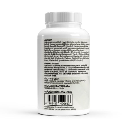 Herkullinen maku tekee vitamiinien ottamisesta vaivatonta – ei tarvetta kanssa.